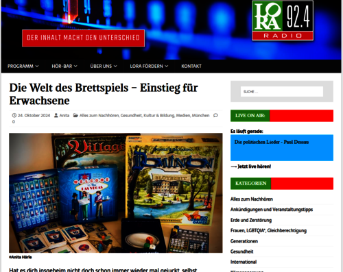 Anita Härle vom Radio LORA aus München hat erneut Prof. Dr. Jens Junge zum Phänomen des Brettspiels interviewt.